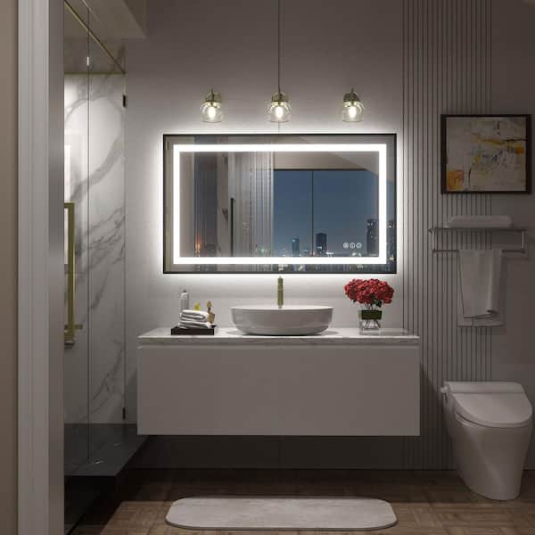 40 in. W x 24 in. H Rectangular Framed Front and Back LED Lighted Anti-Fog Wall Bathroom Vanity Mirror in Tempered Glass