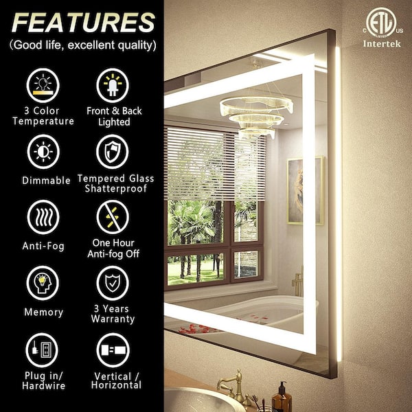 40 in. W x 36 in. H Rectangular Framed Front and Back LED Lighted Anti-Fog Wall Bathroom Vanity Mirror in Tempered Glass
