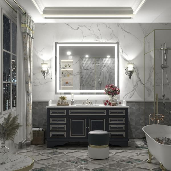 44 in. W x 36 in. H Rectangular Frameless Front and Back LED Lighted Anti-Fog Tempered Glass Wall Bathroom Vanity Mirror