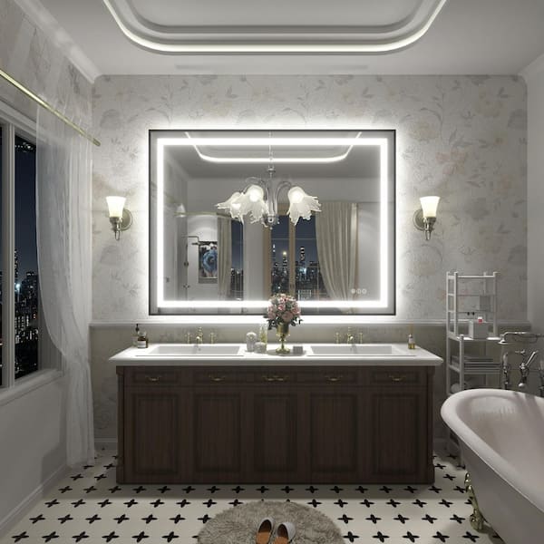 48 in. W x 36 in. H Rectangular Framed Front and Back LED Lighted Anti-Fog Wall Bathroom Vanity Mirror in Tempered Glass