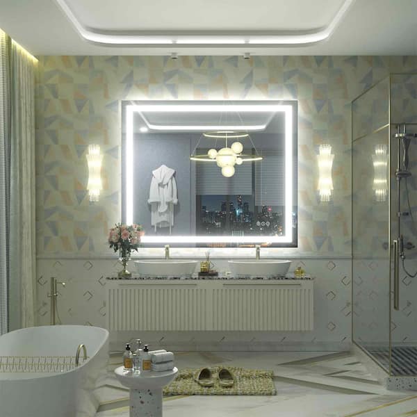 48 in. W x 40 in. H Rectangular Frameless Front and Back LED Lighted Anti-Fog Tempered Glass Wall Bathroom Vanity Mirror
