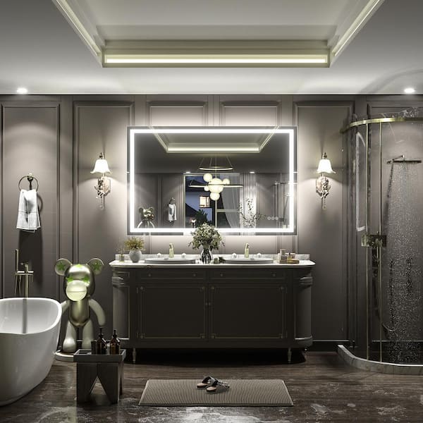 51 in. W x 32 in. H Rectangular Frameless Front and Back LED Lighted Anti-Fog Tempered Glass Wall Bathroom Vanity Mirror