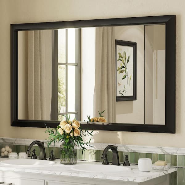 55 in. W x 32 in. H Rectangular Aluminum Alloy Framed and Tempered Glass Wall Bathroom Vanity Mirror in Matte Black