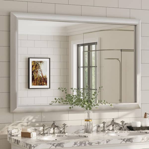 55 in. W x 36 in. H Rectangular Aluminum Alloy Framed and Tempered Glass Wall Bathroom Vanity Mirror in Brushed Silver