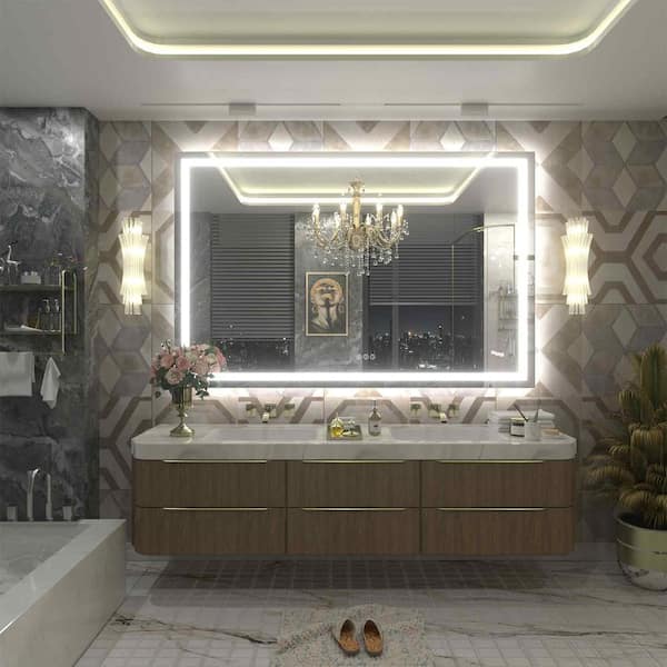 55 in. W x 36 in. H Rectangular Frameless Front & Back LED Lighted Anti-Fog Tempered Glass Wall Bathroom Vanity Mirror