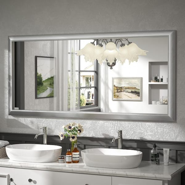 60 in. W x 28 in. H Rectangular Aluminum Alloy Framed and Tempered Glass Wall Bathroom Vanity Mirror in Brushed Silver