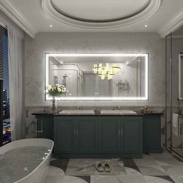 60 in. W x 28 in. H Rectangular Frameless 192 LEDs/m Front Lighted Anti-Fog Tempered Glass Wall Bathroom Vanity Mirror