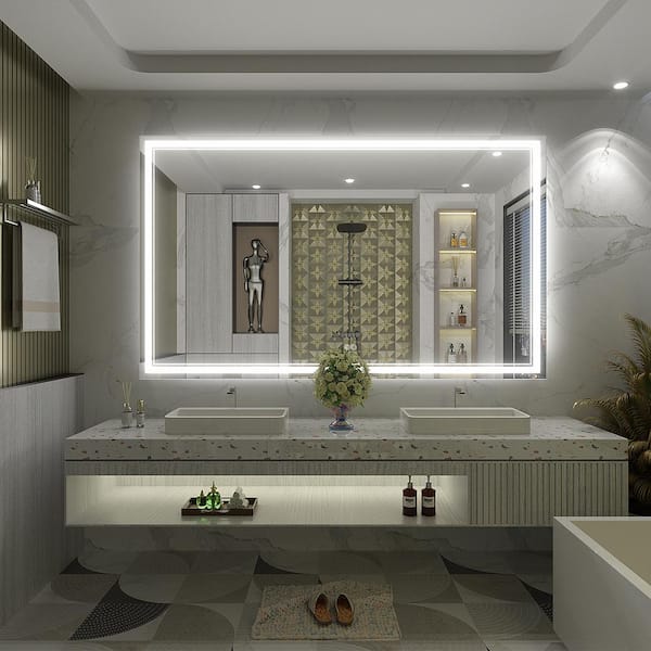 60 in. W x 36 in. H Large Rectangular Frameless Front LED Lights Anti-Fog Wall Bathroom Vanity Mirror in Tempered Glass