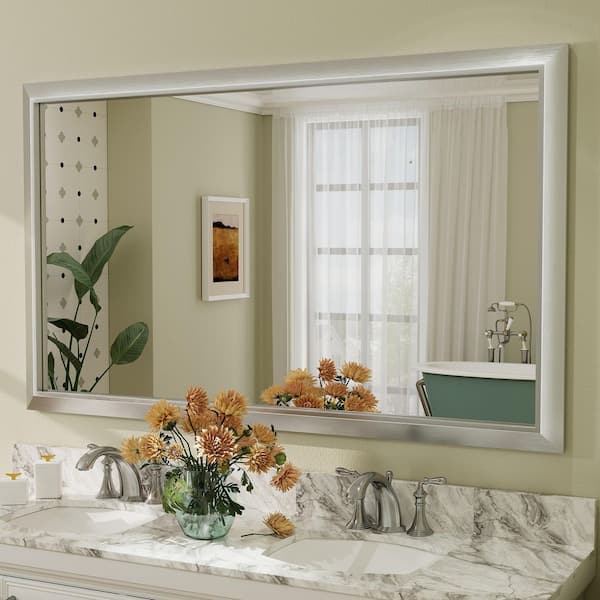 60 in. W x 36 in. H Rectangular Aluminum Alloy Framed and Tempered Glass Wall Bathroom Vanity Mirror in Brushed Silver