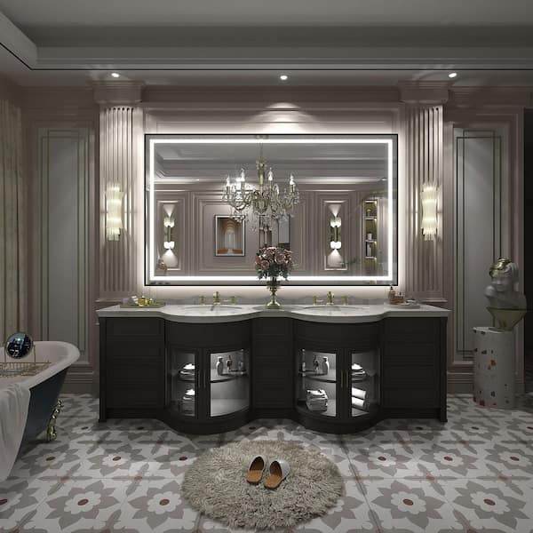 60 in. W x 36 in. H Rectangular Framed Front and Back LED Lighted Anti-Fog Wall Bathroom Vanity Mirror in Tempered Glass