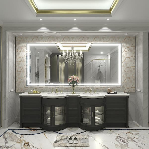 72 in. W x 32 in. H Large Rectangular Frameless Front LED Lights Anti-Fog Wall Bathroom Vanity Mirror in Tempered Glass