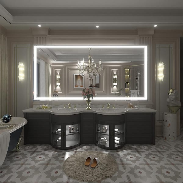 72 in. W x 36 in. H Large Rectangular Frameless Front LED Lights Anti-Fog Wall Bathroom Vanity Mirror in Tempered Glass