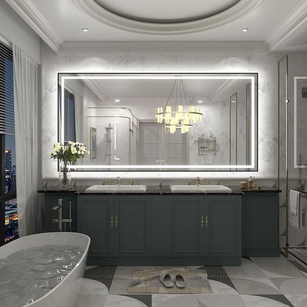 72 in. W x 36 in. H Rectangular Framed Front and Back LED Lighted Anti-Fog Wall Bathroom Vanity Mirror in Tempered Glass