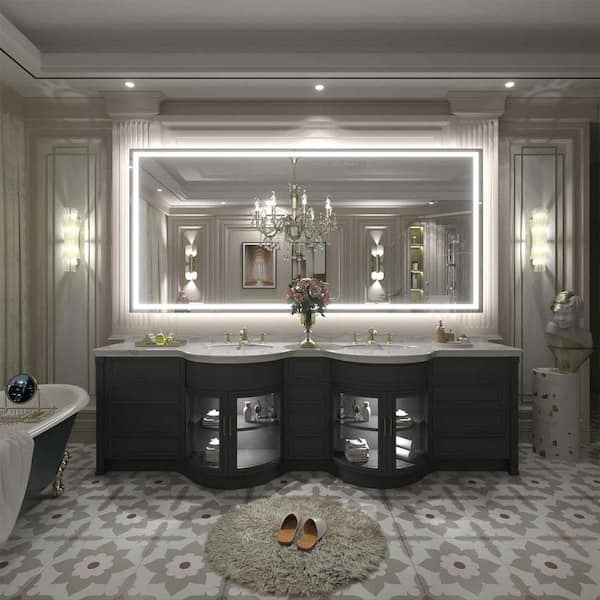 77 in. W x 36 in. H Rectangular Frameless Front & Back LED Lighted Anti-Fog Tempered Glass Wall Bathroom Vanity Mirror