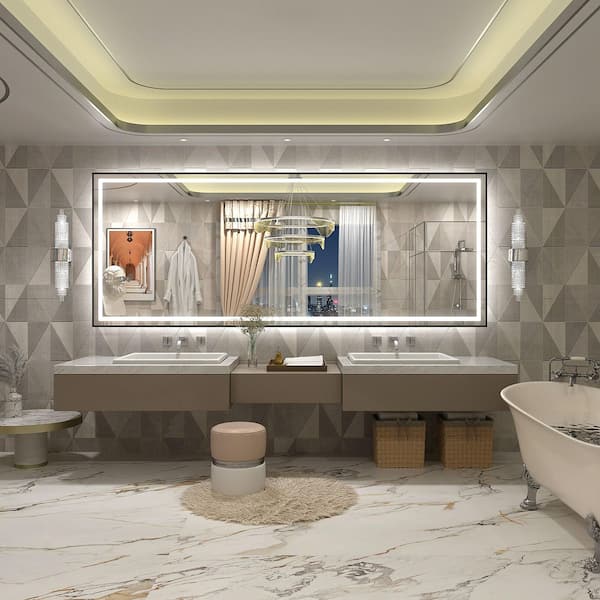 84 in. W x 32 in. H Rectangular Framed Front and Back LED Lighted Anti-Fog Wall Bathroom Vanity Mirror in Tempered Glass