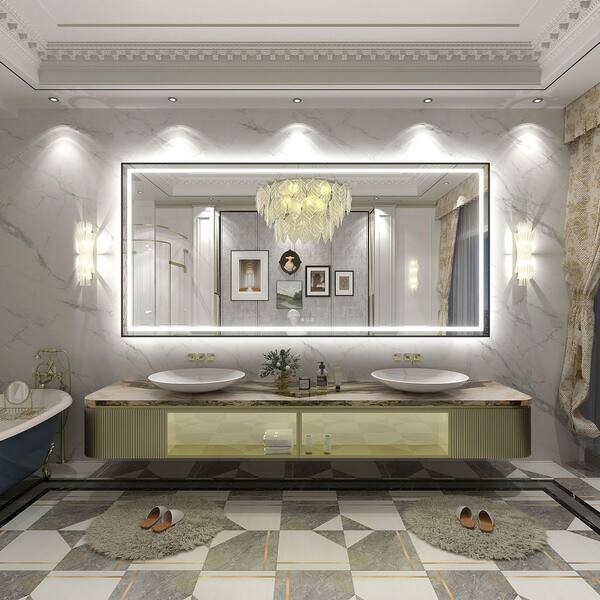 84 in. W x 40 in. H Rectangular Framed Front & Back LED Lighted Anti-Fog Wall Bathroom Vanity Mirror in Tempered Glass