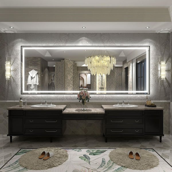 96 in. W x 36 in. H Rectangular Framed Front & Back LED Lighted Anti-Fog Wall Bathroom Vanity Mirror in Tempered Glass