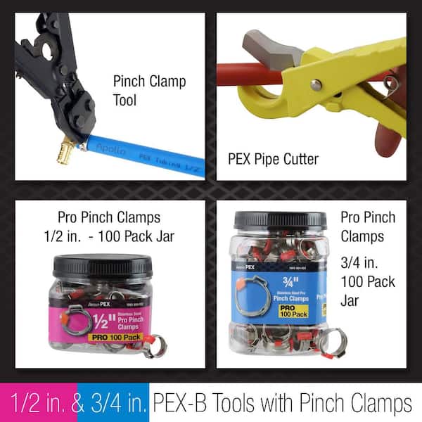 1/2 in. to 3/4 in. PEX-B Pipe Tubing Cutter and Pinch Clamp Tool With Pinch Clamps Kit