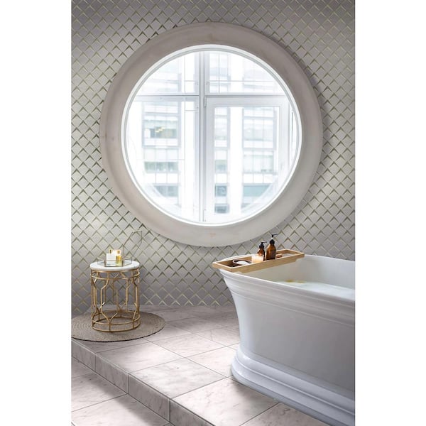 Arrow 4 in. x 5 in. Polished White Eastern White and Glass Mosaic Wall Tile (0.13 sq. ft. /Case) Sample