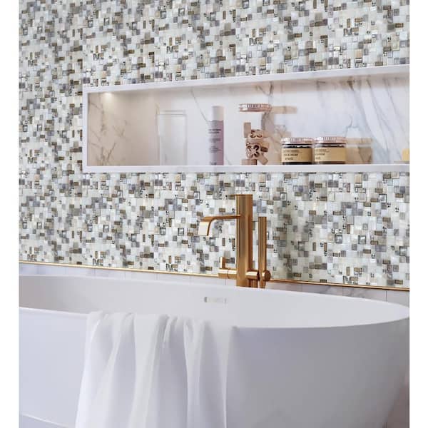 Beige 12.4 in. x 12.6 in. Polished Mini Versailles Glass Mosaic Floor and Wall Tile (10.85 sq. ft./Case)