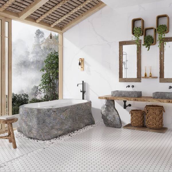 Cirkel Hex 10.7 in. x 11.1 in. Matte White Porcelain Mosaic Wall and Floor Tile (8.25 sq. ft./Case) - 10 pack
