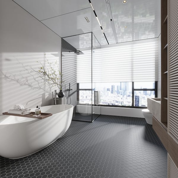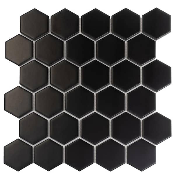 Cirkel Hex 11 in. x 12 in. Matte Black Porcelain Mosaic Wall and Floor Tile (8.36 sq. ft./Case) - 10 pack