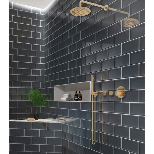 Colorway 3 in x 6 in Dark Gray Glass Mosaic Polished Wall and Floor Tile (30 Cases/150 sq. ft. /Pallet)