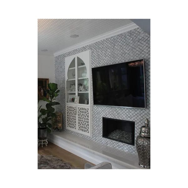 • Polished white and charcoal gray marble mosaic tile
