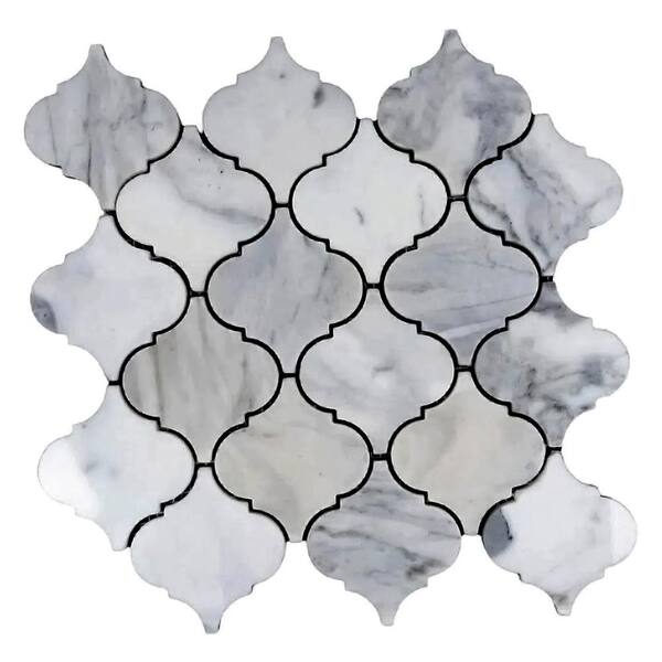 Marmor 4 in. x 5 in. Polished White Calacatta Arabesque Marble Mosaic Wall and Floor Tile (0.13 sq. ft. /Case) Sample