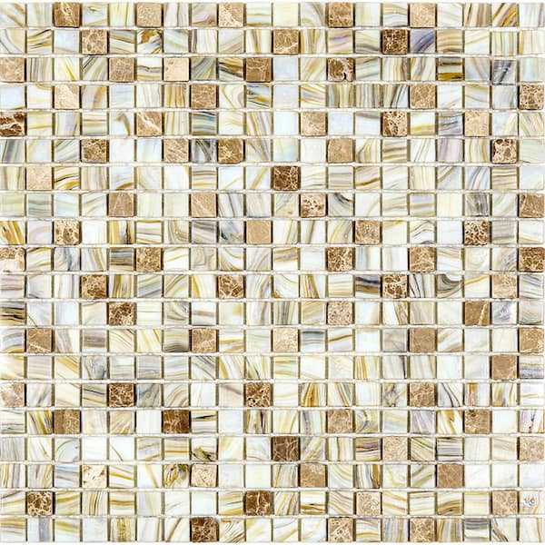 Mingles 11.6 in. x 11.6 in. Glossy Beige Glass Mosaic Wall and Floor Tile (18.69 sq. ft./case) (20-pack)