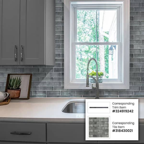 Montana 0.6 in. x 12 in. Dark Gray Glass Glossy Pencil Liner Tile Trim (0.5 sq. ft./case) (10-pack)