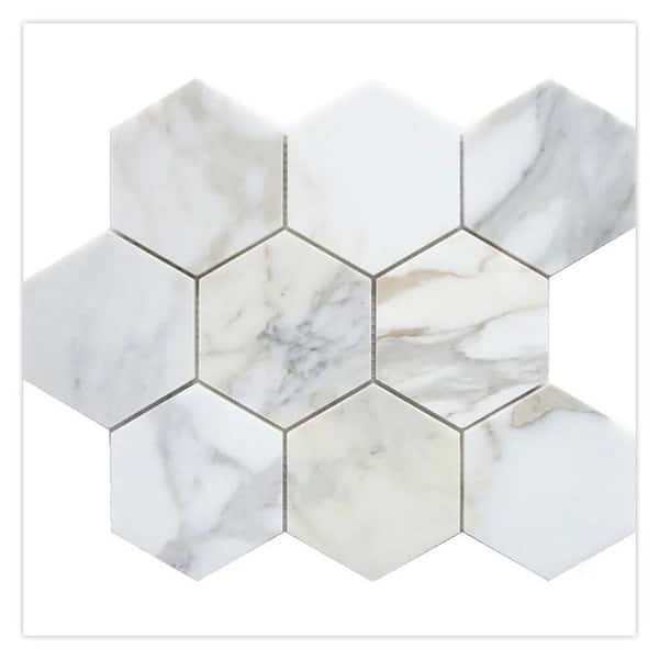 Serena 10 in. x 11 in. Honed White Gray Calacatta Gold Marble Hexagon Mosaic Tile (3.75 sq. ft./case) 5-Pack