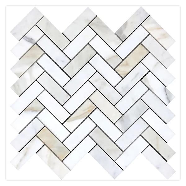 Serena 12 in. x 13 in. Honed Calacatta Gold White Gray Marble Mosaic Herringbone Tile (5.29 sq. ft./case) 5-Pack
