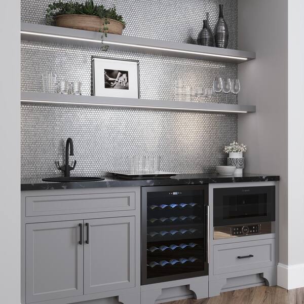 Silver 4 in x 5 Polished Penny Round Glass Mosaic Floor and Wall Tile Sample