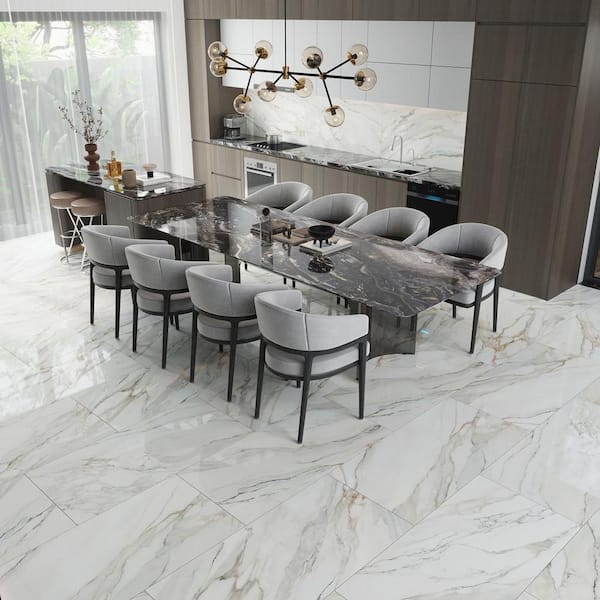 Splendor 24 in. x 48 in. Polished White with Gray Vein Porcelain Wall and Floor Tile (15.42 sq. ft./case)-2 Pack
