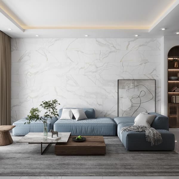 Strata 16 in. x 48 in. Matte Soft White Ceramic Large Format Wall and Floor Tile (15.5 sq ft/case)-3 Pack