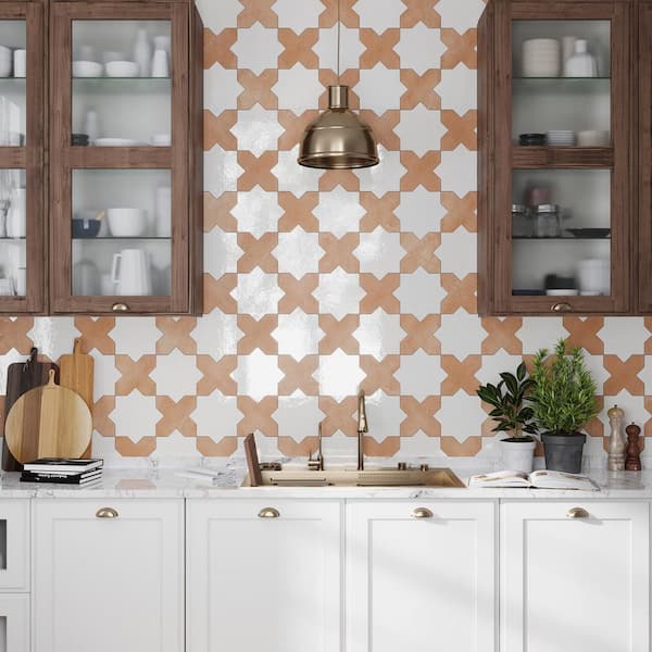 Terralis 7 in. x 7 in. Matte Terracotta Porcelain Cross Wall and Floor Tile (5.6 sq. ft./case)-16 Pack