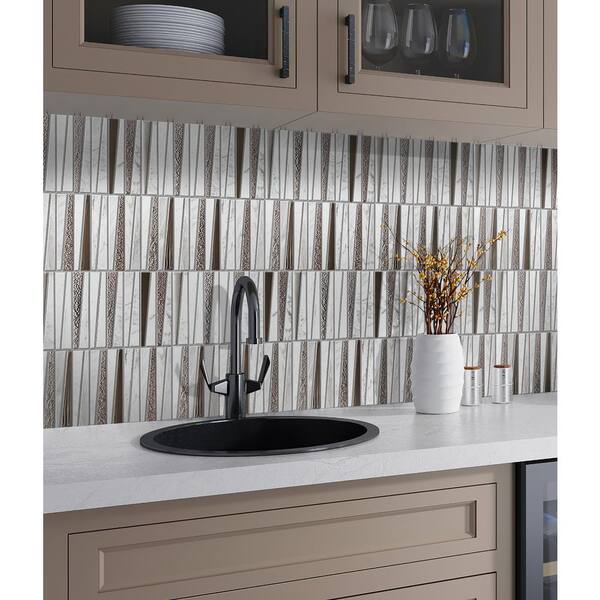 White 11.8 in. x 11.8 in. Polished and Textured Marble and Glass Mosaic Tile (5-Pack) (4.83 sq. ft./Case)