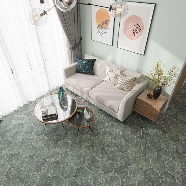 Zenith 9 in. x 11 in. Textured Olive Green Porcelain Hexagon Wall and Floor Tile (8.07 sq. ft./case)-16 Pack