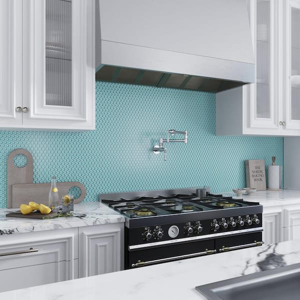 Aqua 4 in. x 5 in. Penny Round Polished Glass Mosaic Tile Sample (0.13 sq. ft./Piece)