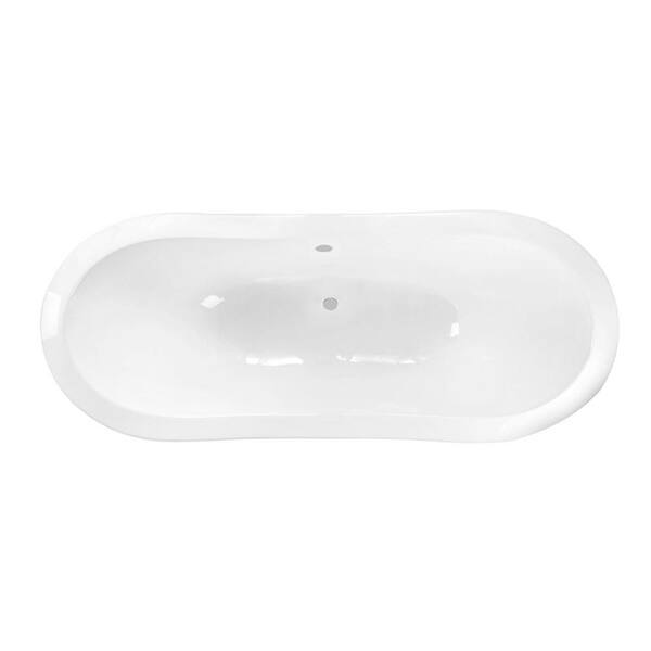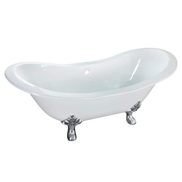 61 in. Cast Iron Double Slipper Clawfoot Bathtub in White with Feet in Polished Chrome