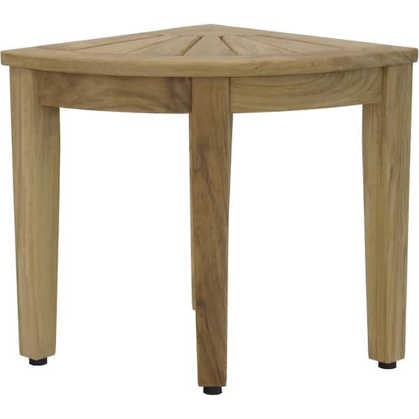 15.5 in x 15.5 in Kai Corner Raw Teak Shower Bench Natural Finish Walk In Shower Seat