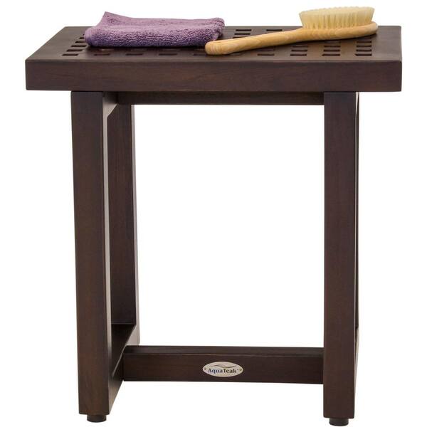 18 in. x 12 in. Grate Mocha-Shield Freestanding Teak Shower Bench