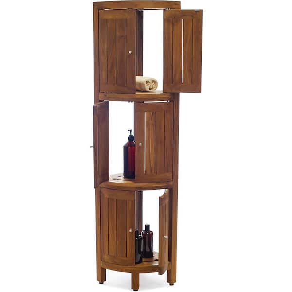 Kai™ 12 in. x 12 in. x 59 in. 4-Tier Corner Teak Household Shelving Unit with Front-Facing Doors Teak Oil Finish