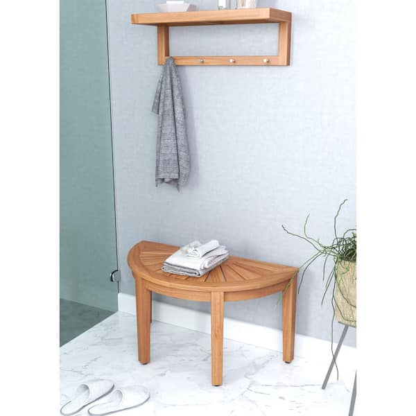 Original 31.5 in. x 15.5 in. Half-Moon Freestanding Teak Shower Bench Walk in Shower Seat