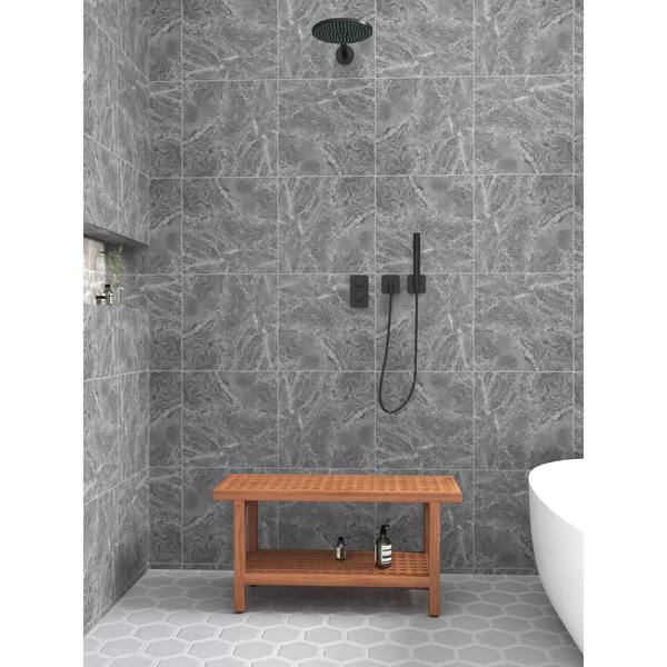 Original 36 in. x 14 in. Grate Freestanding Teak Shower Bench with Shelf Walk in Shower Seat