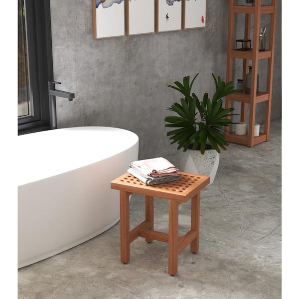 Patented 18 in x 12 in Grate Lotus Freestanding Teak Shower Bench Walk In Shower Seat
