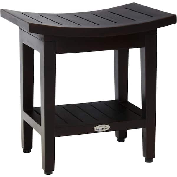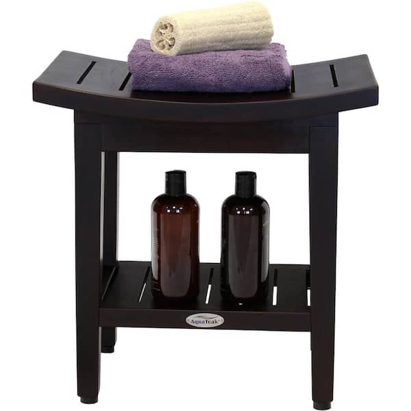 Patented 18 in. x 12 in. Maluku Mocha-Shield Freestanding Teak Shower Bench with Shelf Walk in Shower Seat