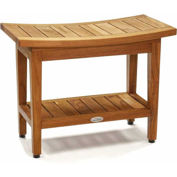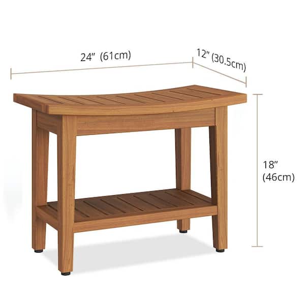 Patented 24 in. x 12 in. Maluku Freestanding Teak Shower Bench with Shelf Walk in Shower Seat