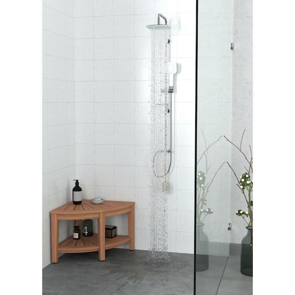 The Original 22 in. Kai Corner Teak Shower Bench with Shelf